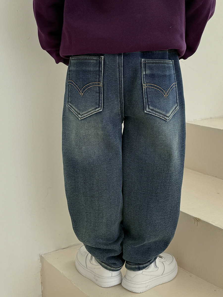 Boys' fleece jeans winter new style children's trousers winter Korean style pants thickened children's clothing